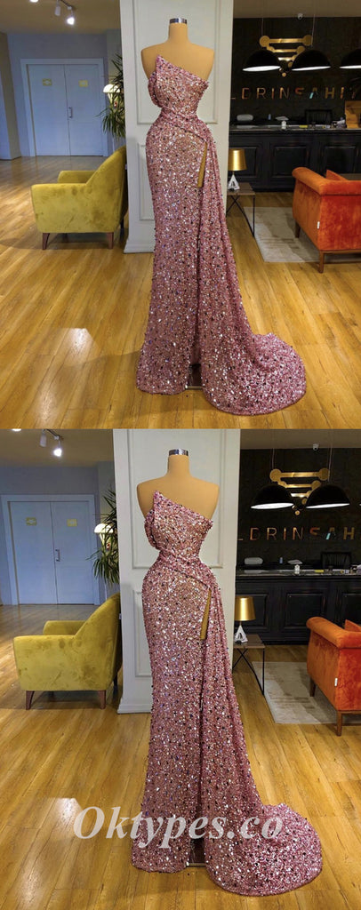 Sexy Shiny Sequin Sweetheart Sleeveless Side Slit Mermaid Long Prom Dresses,PDS0514