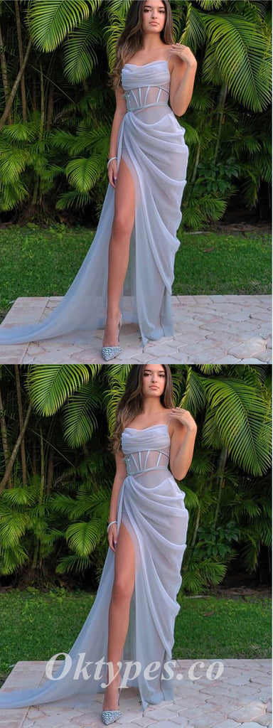 Sexy Special Fabric Spaghetti Straps Sleeveless Side Slit Mermaid Long Prom Dresses,PDS0511