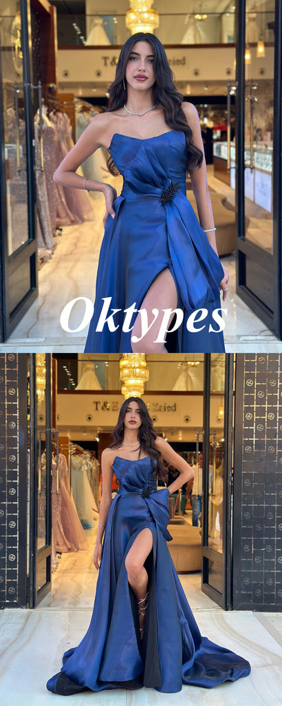 Sexy Taffeta Sweetheart Side Slit A-Line Long Prom Dresses, PDS1020
