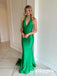 Sexy Moss Soft Satin Halter Mermaid Long Prom Dresses, PDS1032