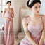 Pink round neck Long Sleeve Long Mermaid Prom Dresses With Applique, TYP1694